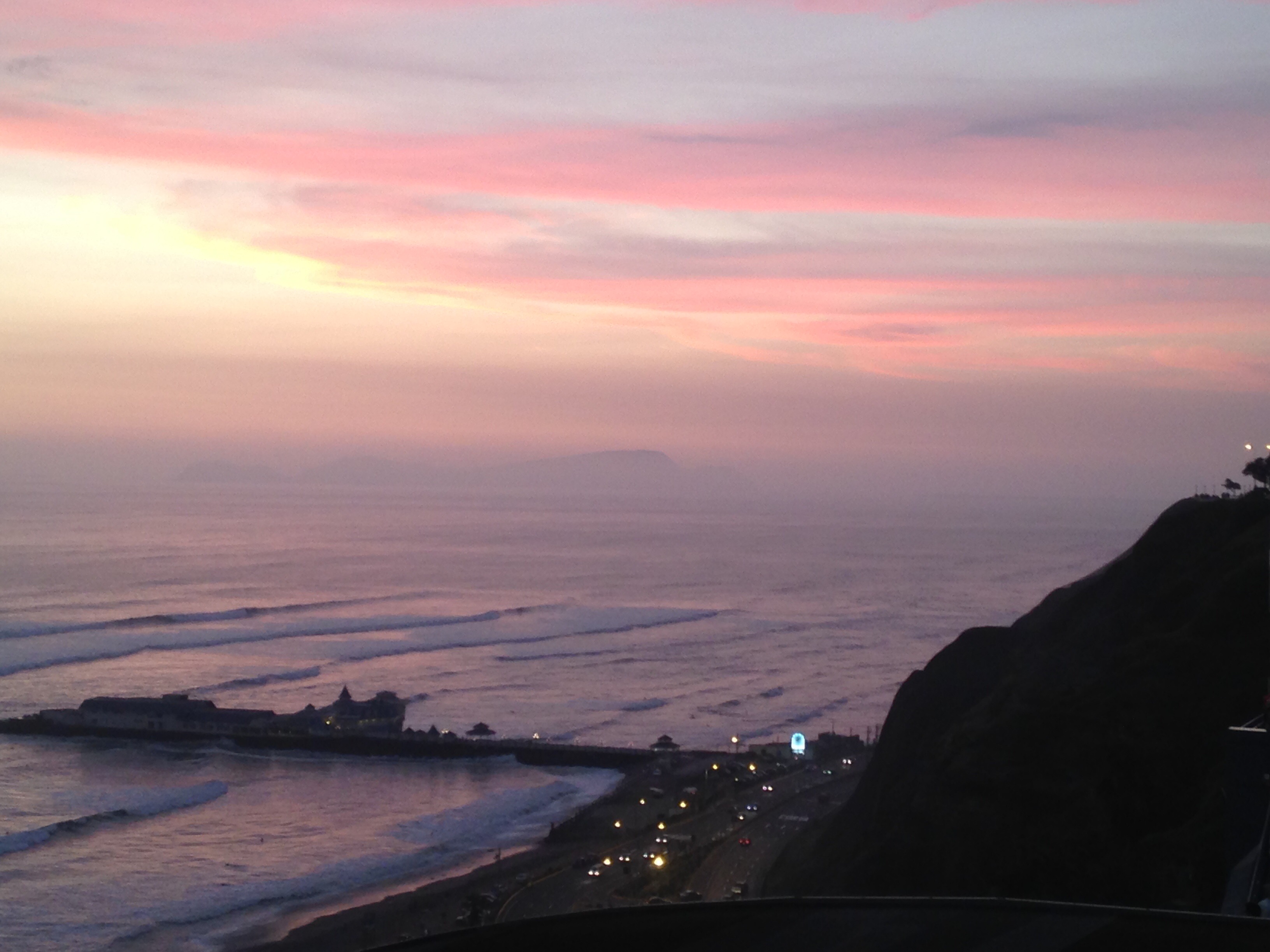 The sunset view of the Pacific Ocean is from a cliff just outside our hotel.
