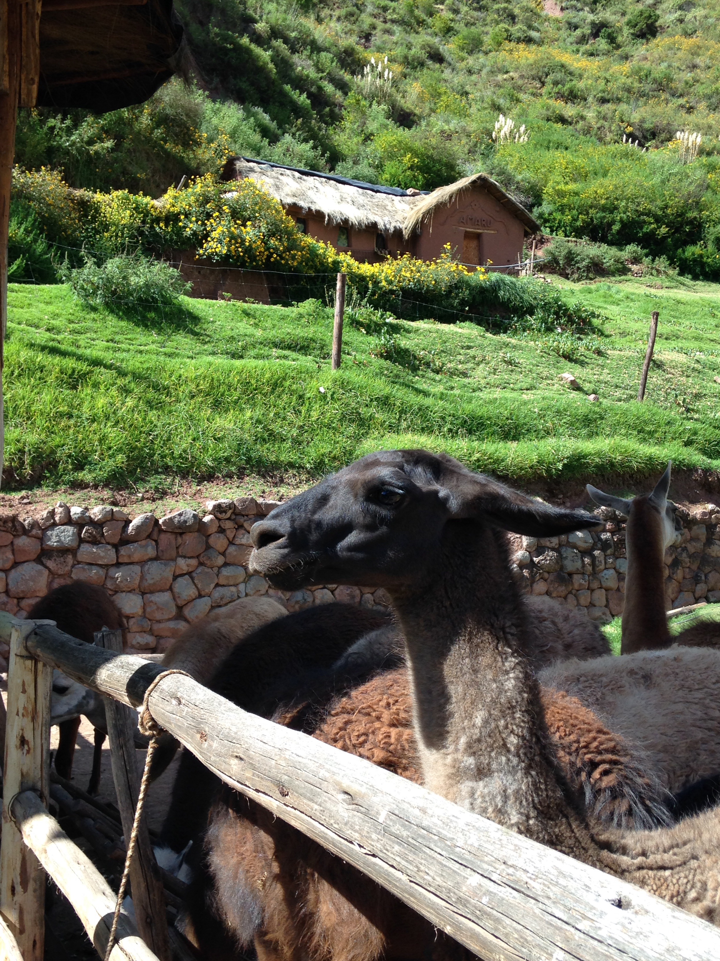 We left Cusco city today with a very small tour group going down the mountain into the valley toward Machu Picchu. On the way we saw lots of farming, alpacas & Incan ruins.