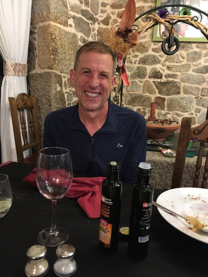 This is Brian from Portland, Oregon. He was the last pilgrim we met out in Muxia and he had just extended his Camino out to the Penninsula as Sharon and I had. We all so excited to see each other at the pension and had to share time & wine as we reflected on the aspects of the Camino experience. It was a perfect way to spend our last night in Spain and prepare to move on back into the ‘real world’ after experiencing the Camino Magic.